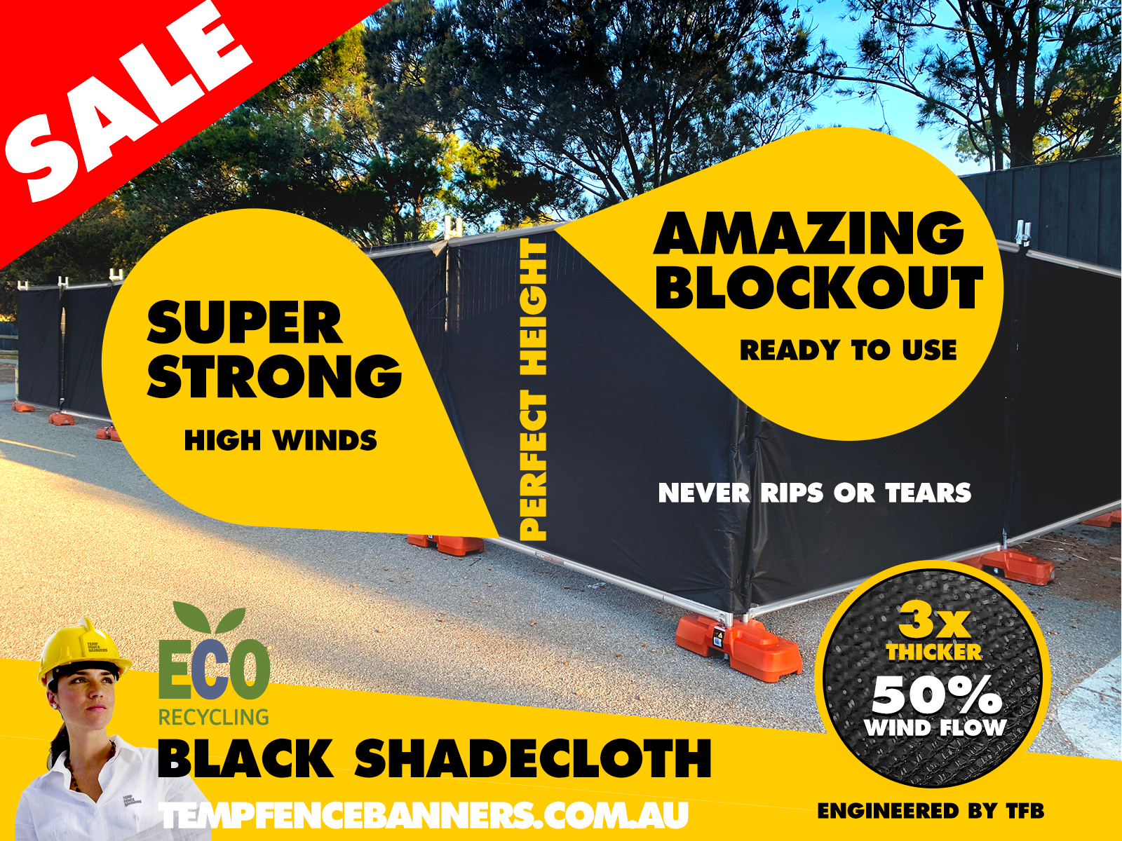 Made and designed for temporary fence covers, by us... we are the cheapest supplier of genuine black shade cloth that works on temp fence hire panels, site containment runs and lots more. Buy Direct and Save!.